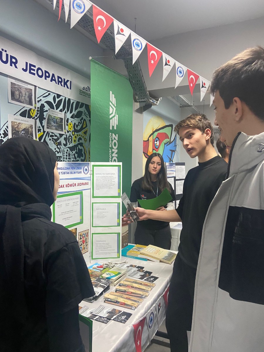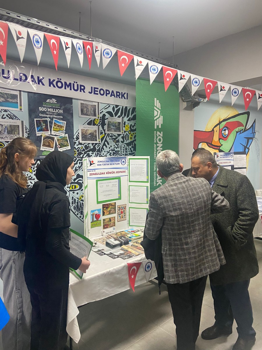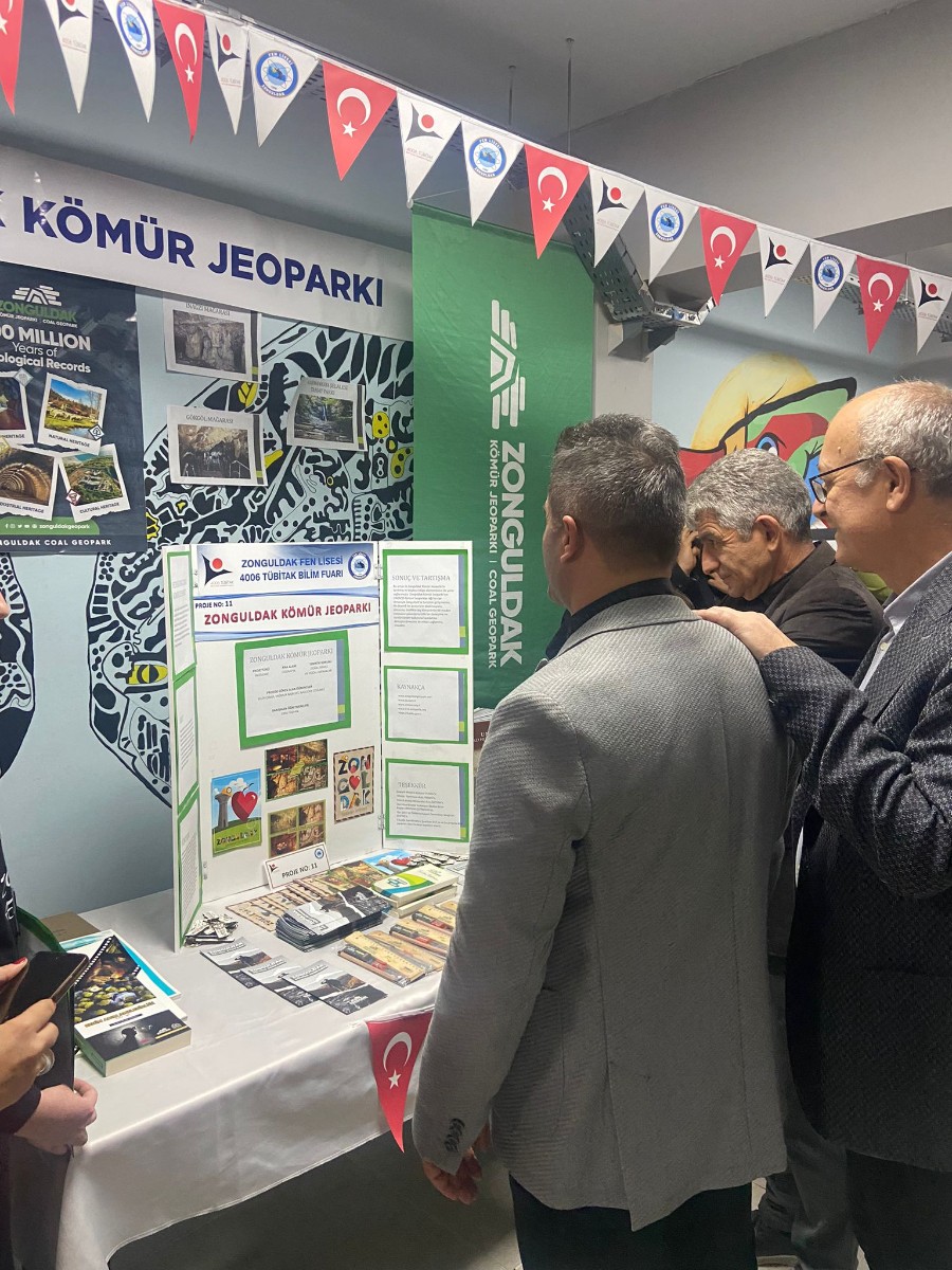 Fuarda; Zonguldak Fen Lisesi öğretmen ve öğrencileri tarafından hazırlanan birbirinden başarılı 5 araştırma, 6 inceleme ve 9 tasarım olmak üzere toplam 20 proje sergilenmiş olup projeler arasında yer alan Ulusal Zonguldak Kömür Jeoparkı (UZKJ) sunum ile temsilen bir danışman öğretmen ve üç öğrenci ile ilgili ziyaretçilere aktarılmıştır. Projeler, gelen ziyaretçiler tarafından ilgi ile dinlenerek, incelenmiş olup böylesine güzel bir projede UZKJ’nı gençlerle buluşturan jeopark paydaşı Zonguldak Fen Lisesine, teşekkürlerimizi sunarız.