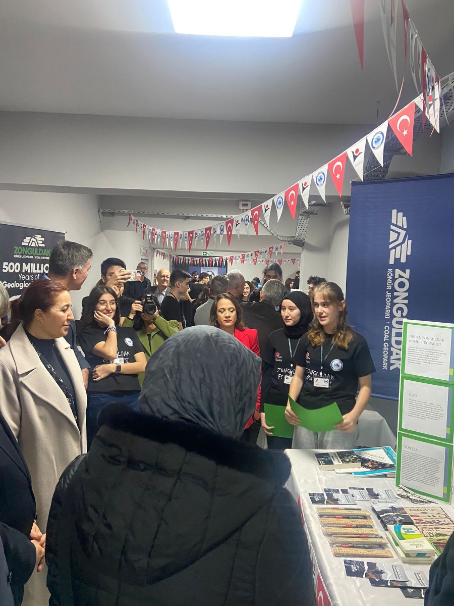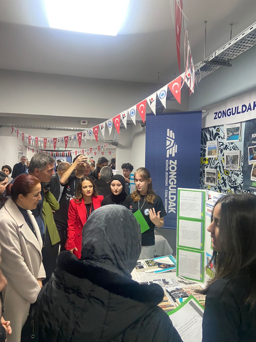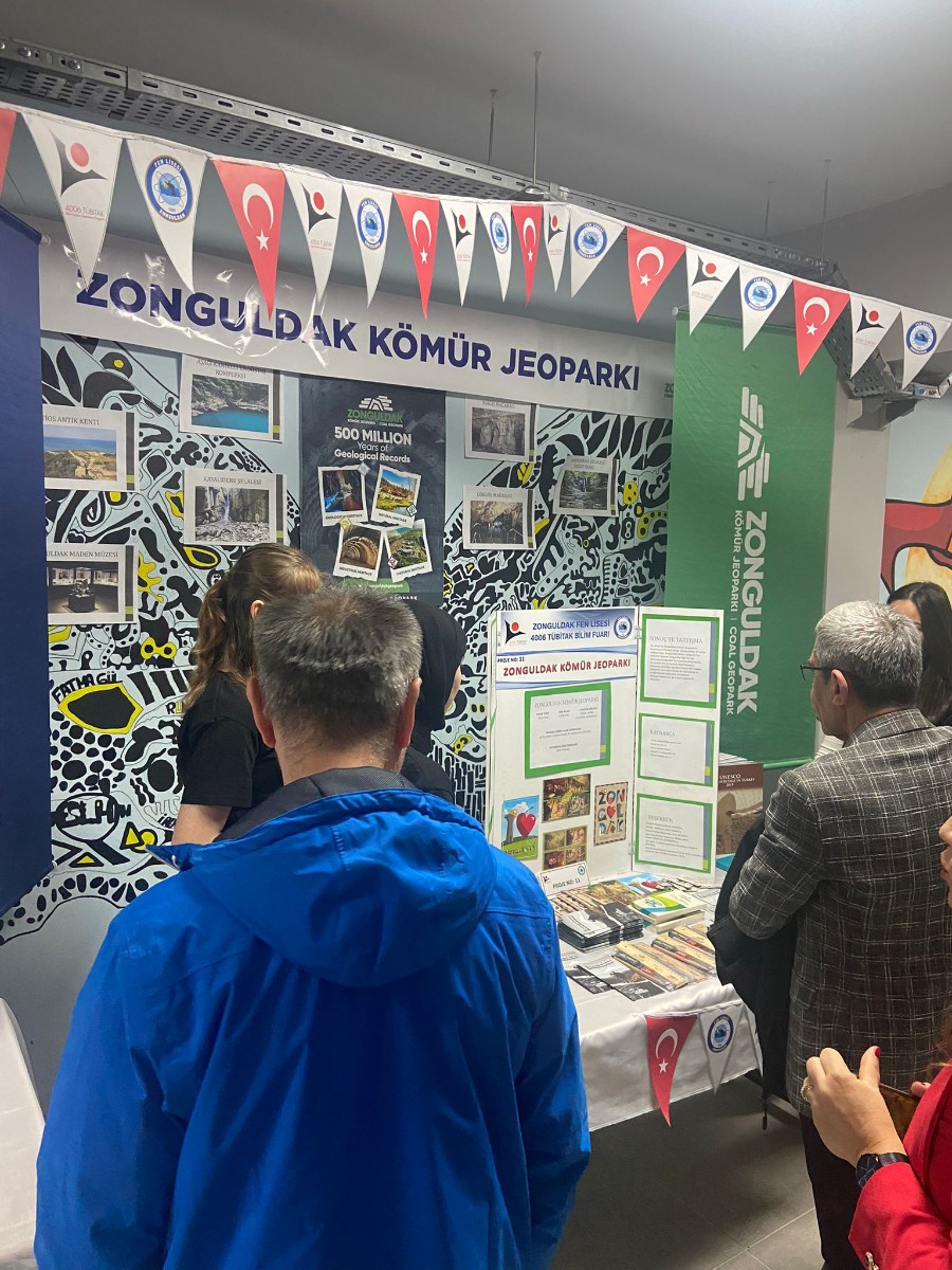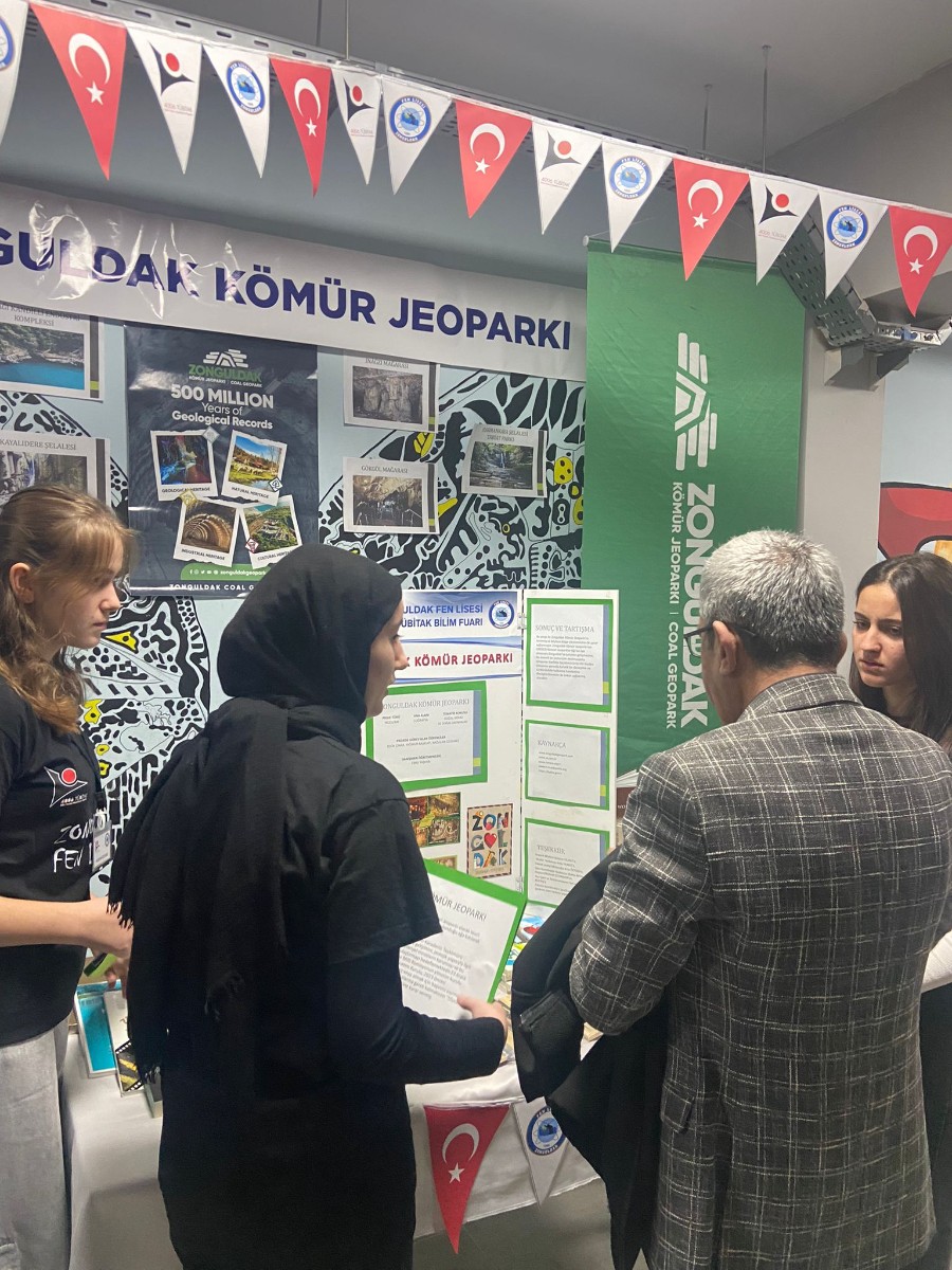 Fuarda; Zonguldak Fen Lisesi öğretmen ve öğrencileri tarafından hazırlanan birbirinden başarılı 5 araştırma, 6 inceleme ve 9 tasarım olmak üzere toplam 20 proje sergilenmiş olup projeler arasında yer alan Ulusal Zonguldak Kömür Jeoparkı (UZKJ) sunum ile temsilen bir danışman öğretmen ve üç öğrenci ile ilgili ziyaretçilere aktarılmıştır. Projeler, gelen ziyaretçiler tarafından ilgi ile dinlenerek, incelenmiş olup böylesine güzel bir projede UZKJ’nı gençlerle buluşturan jeopark paydaşı Zonguldak Fen Lisesine, teşekkürlerimizi sunarız.