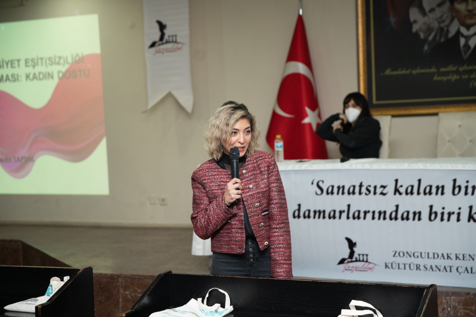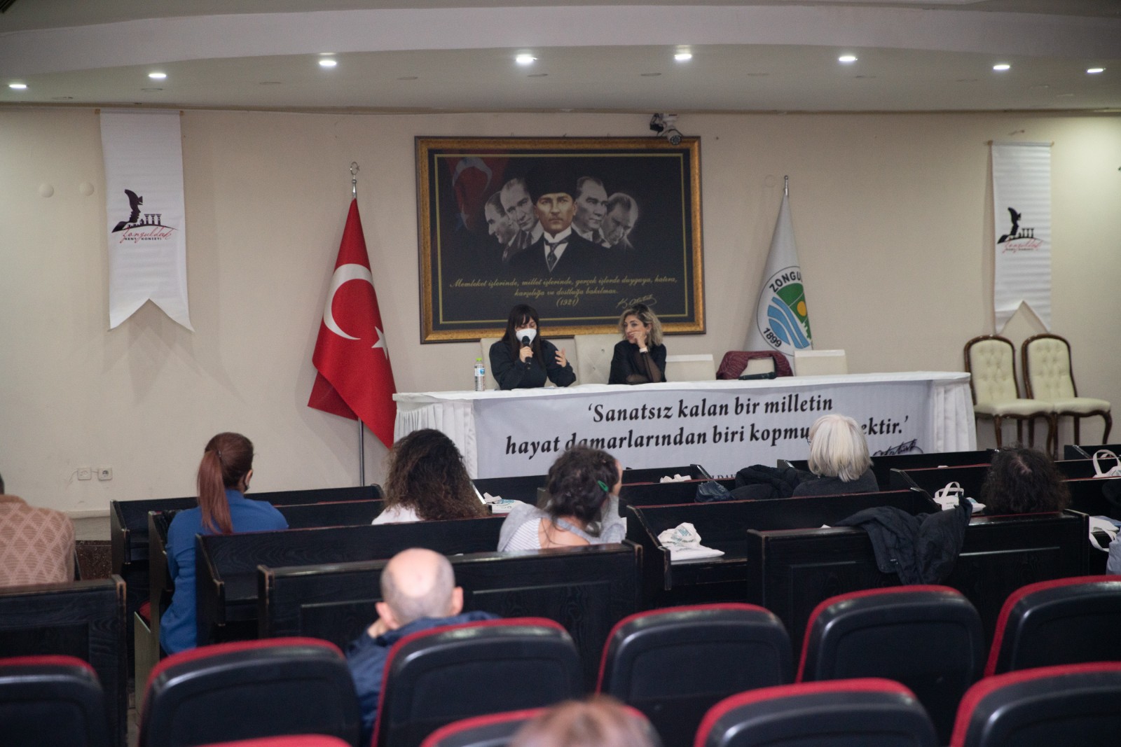 8 Mart Kadınlar Günü kapsamında, Zonguldak Kent Konseyi Kültür Sanat Çalışma Grubu önderliğinde, Zonguldak Ulusal Kömür Jeoparkı, Zonguldak Belediyesi, ZBEÜ Kadın Sorunları Uygulama ve Araştırma Merkezi ile işbirliğiyle düzenlenen etkinlikte; Dr. Öğr. Üyesi Seda TAPDIK ‘Siyasette Kadın Görünürlüğü, Kadın Dostu Kent Kavramı ve Türkiye’de Durum’ isimli sunumlarını, Dr. Öğr. Üyesi Figen UZAR ÖZDEMİR ‘Doğal Afetlerde Kadınların Dezavantajlı Konumu: 6 Şubat 2023 Depreminden Örnekler’ isimli sunumlarını gerçekleştirmişlerdir. Sunumlar esnasında katılımcılarla karşılıklı konuşma, soru-cevap kısmı olup, katılımcılara çeşitli hediyeler takdim edilmiştir.