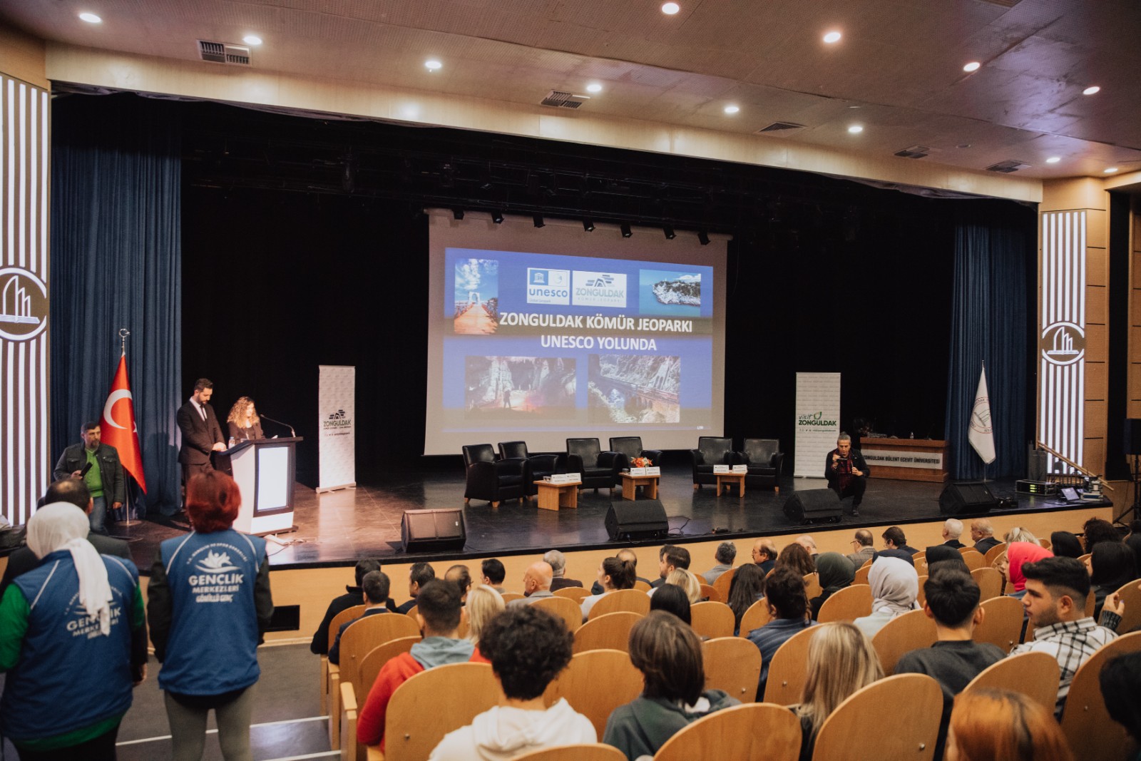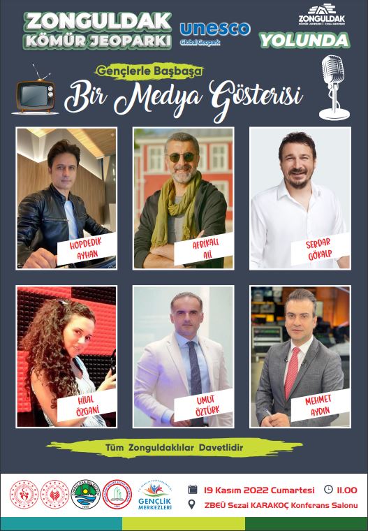 Zonguldak Kömür Jeoparkı UNESCO Yolunda, “Gençlerle Başbaşa Bir Medya Gösterisi” programı Bülent Ecevit Üniversitesi Sezai Karakoç Kültür Merkezi’nde gerçekleştirildi. Zonguldak Kömür Jeoparkı Teknik Koordinatörü Prof. Dr. Yeşim BÜYÜKMERİÇ’in “Jeopark Nedir? Ve Zonguldak Kömür Jeoparkı’nın UNESCO’ya Başvuru Sürecinde Yürütülen Çalışmalar” adlı sunumunun ardından TGRT Haber’in tecrübeli ekran yüzü Mehmet Aydın ve Türkiye’nin ünlü radyo programcıları Hopdedik Ayhan, Afrikalı Ali, Serdar Gökalp, Hilal Özgani ve Umut Öztürk söyleşilerini gerçekleştirdi.
