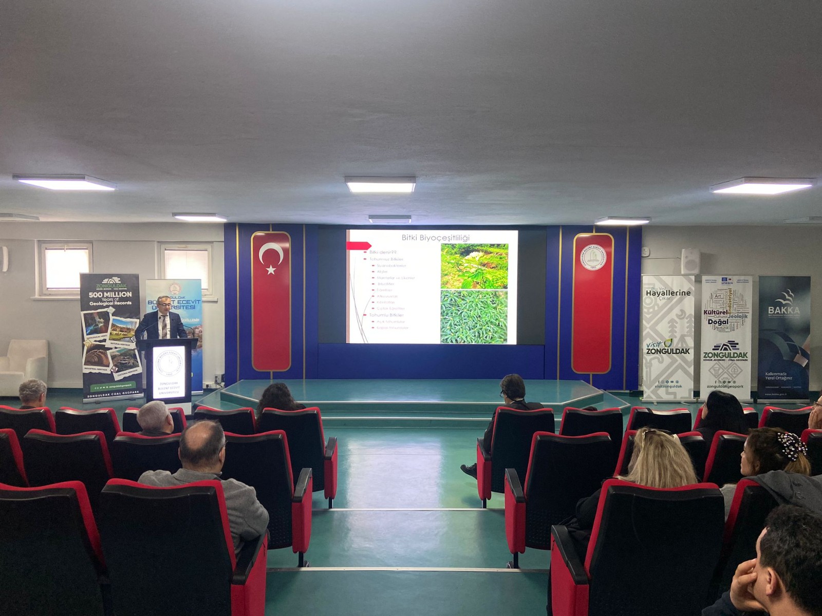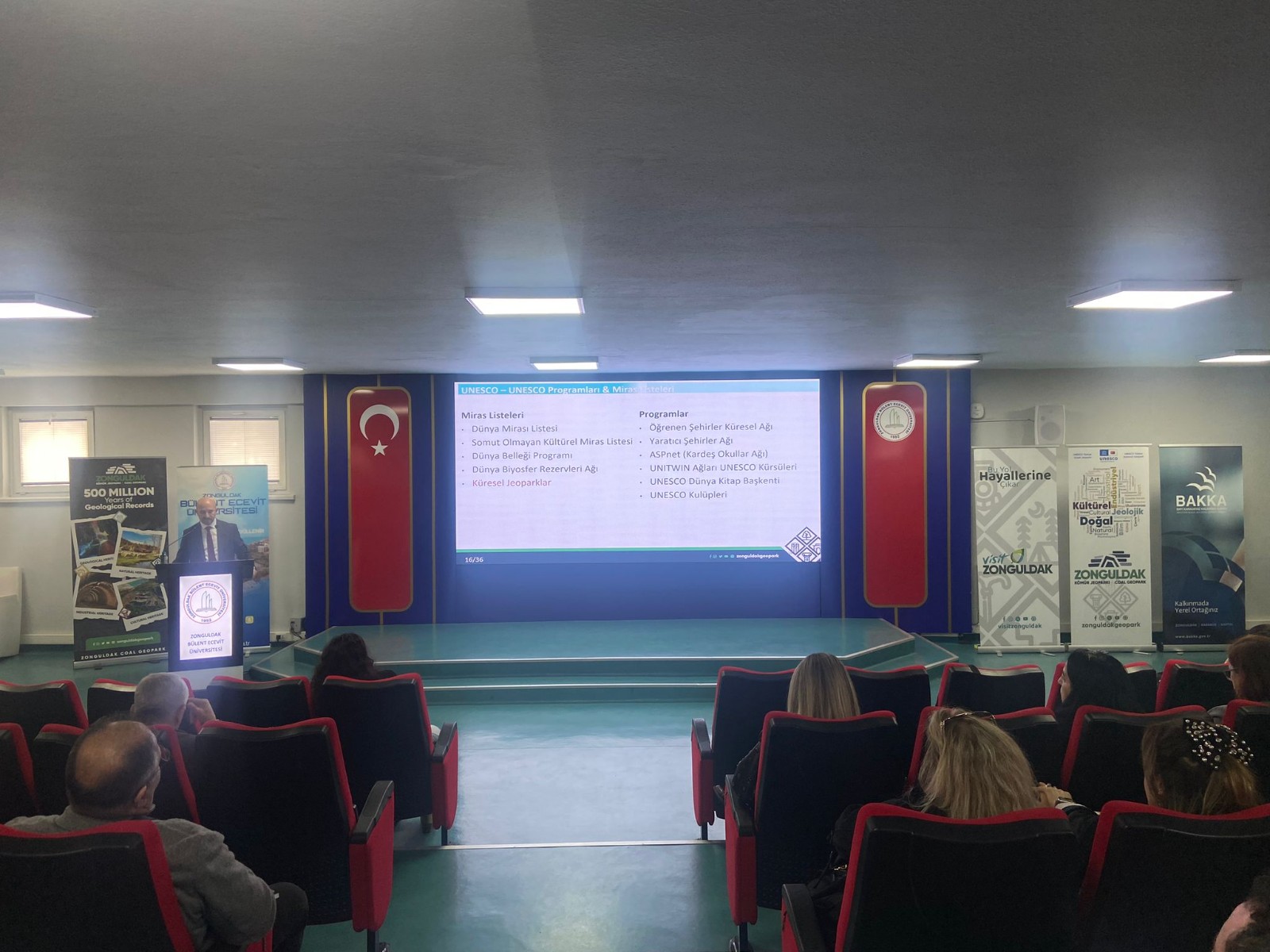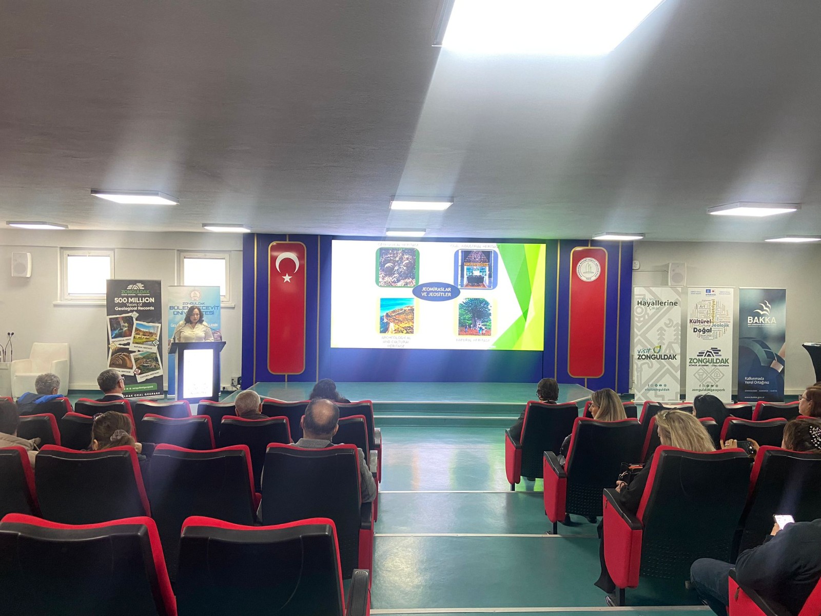Bakka Turizm ve Tanıtım Birim Başkanı, Zonguldak Kömür Jeoparkı Koordinatör Yardımcısı Mehmet Çetinkaya’nın Jeoparklaşma ve UNESCO Küresel Jeoparklar Ağı’na üyelik başvuru süreci hakkındaki sunumunun ardından, Ulusal Zonguldak Kömür Jeoparkı’nın 4 Ana temasına ait çalışma grup başkanları; UZKJ Bilimsel Koordinatörü/Jeolojik Miras Grubu Başkanı Prof. Dr. Yeşim Büyükmeriç-Doğal Miras Grup Başkanı Prof. Dr. Mustafa Sözen ve Kültürel Miras Grup Başkanı Kürşat Coşgun tarafından yapılan ilgili başlıklara ilişkin bilgilendirme sunumları, Zonguldak Bülent Ecevit Üniversitesi, Sürekli Eğitim Merkezi tarafından davet edilen ve planlanan jeopark eğitimlerini verecek 24 öğretim görevlisi tarafından izlenmiştir.