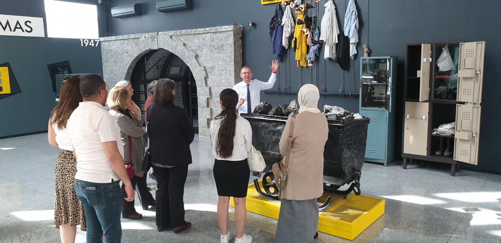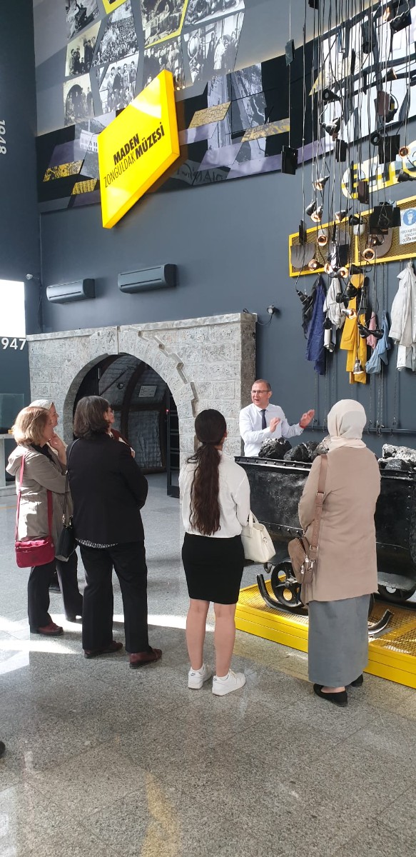 Kozlu Kaymakamı Sn. Hüseyin ECE'nin eşi ve misafiri Geleneksel Türk sanatlarından biri olan Kat'ı sanatçısı Sn. Safiye MORÇAY Hanımefendiye Jeositimiz olan Maden Müzesi ve Kömür Deneyim Ocağı tanıtılmıştır.