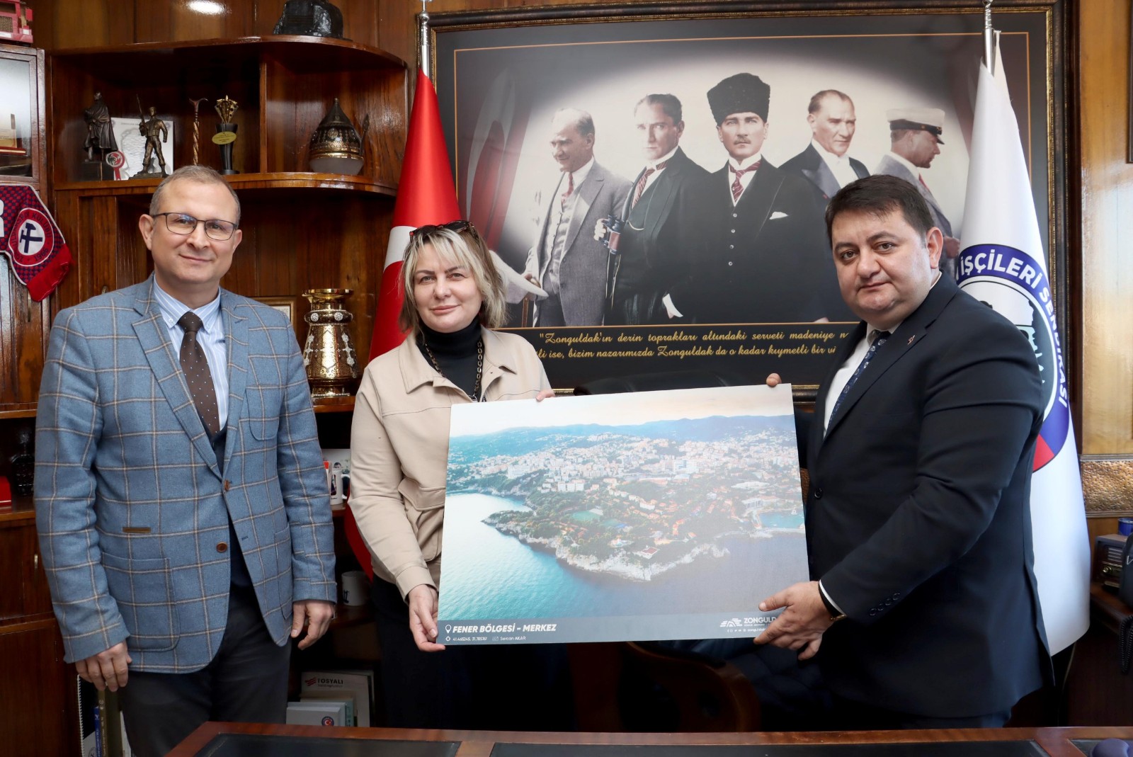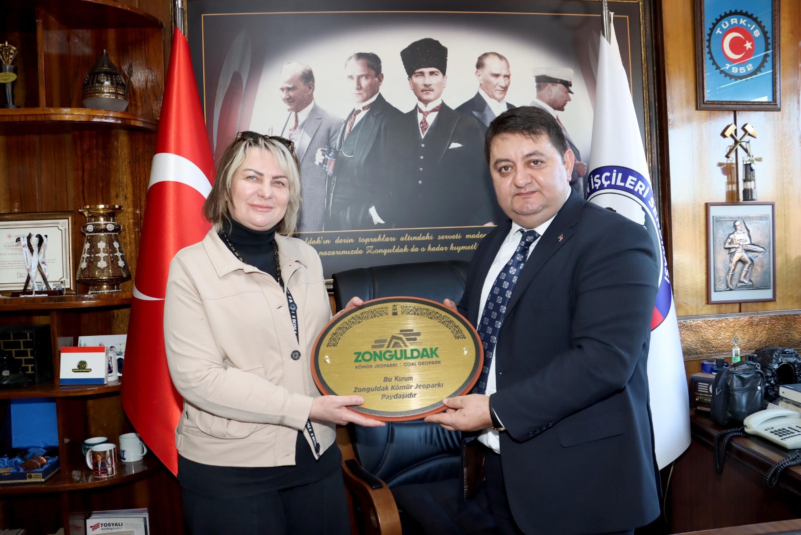 UZKJ Müdürü Gülsüm Yılmaz, ülkemizin ve şehrimizin en önemli madenci sendikasını ziyeret etmekten duyduğu memnuniyeti ifade etmiş, sendika yöneticilerine ve maden şehit ailelerine jeopark gezisi düzenleyerek jeositlerimizi tanıtmak istediğini belirtmiştir.