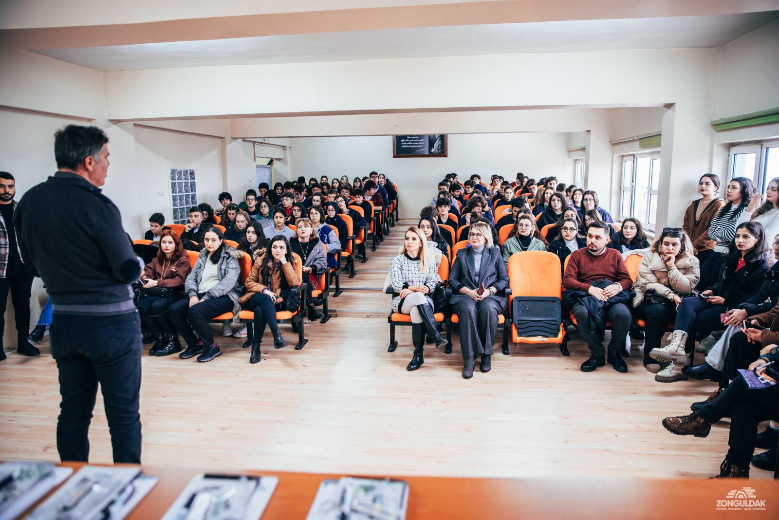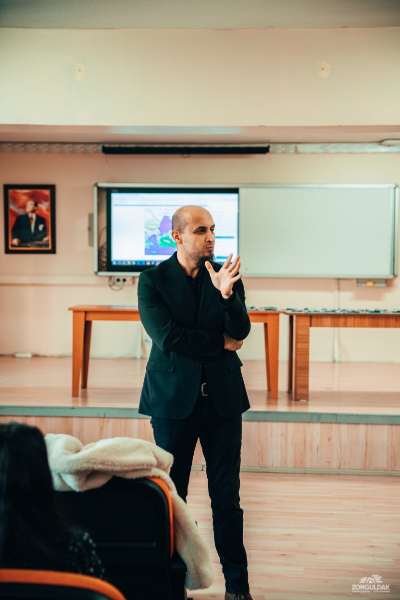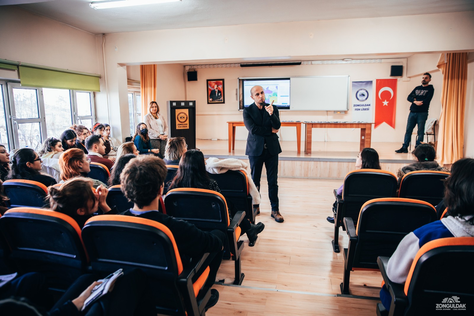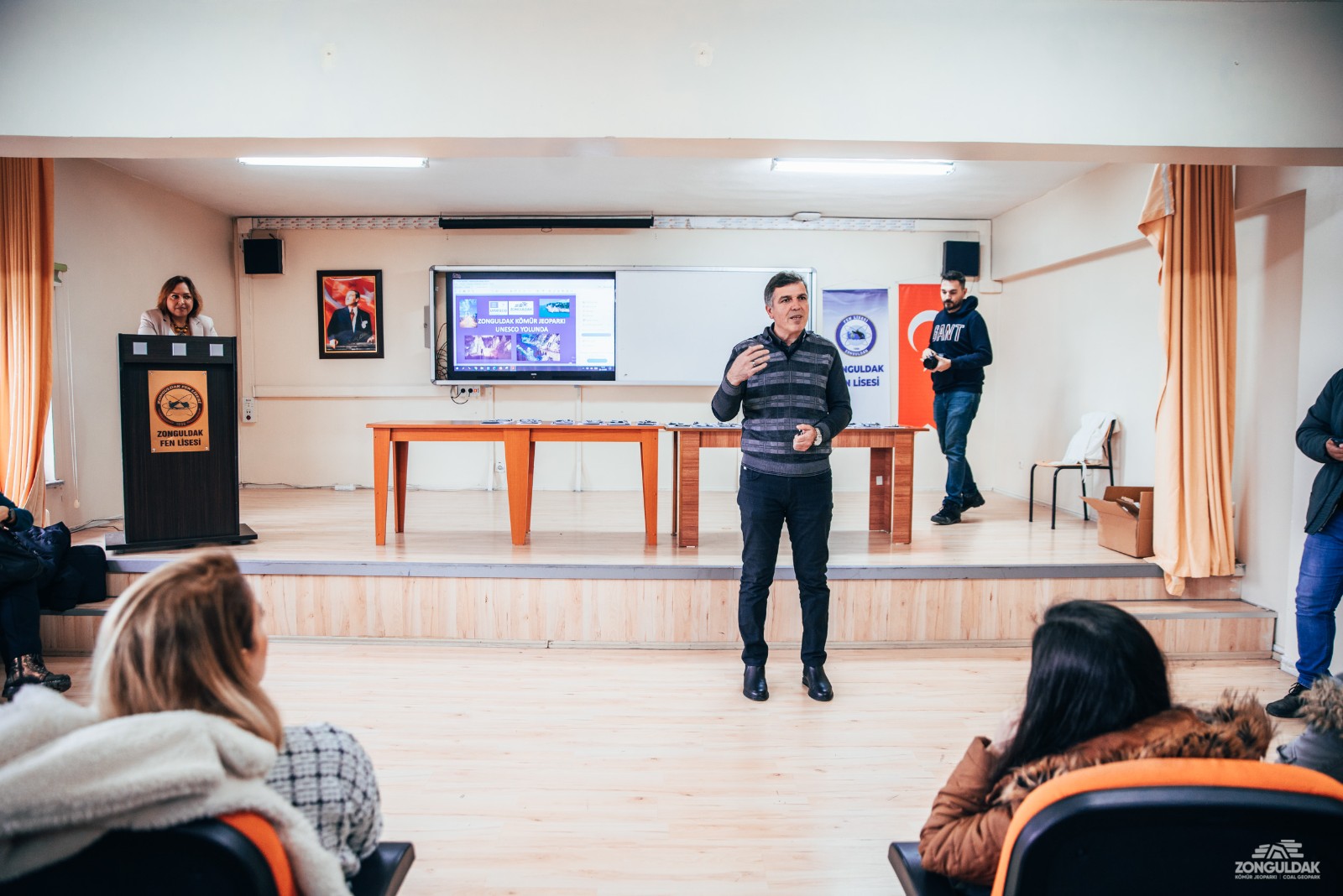Zonguldak Bülent Ecevit Üniversitesi Sosyal Sorumluluk Projesi dersleri kapsamında Sosyal Hizmetler bölümü ile birlikte planlanan etkinliklerin ilki Zonguldak Fen Lisesi’nde gerçekleşti. Sosyal Hizmetler bölümü öğrencilerinin, Fen Lisesi’ndeki öğrencilere Zonguldak Kömür Jeoparkı'nı anlatmaları üzerine kurgulanan etkinlik, Jeopark Bilimsel Koordinatörü Prof. Dr. Yeşim BÜYÜKMERİÇ’in genel bilgilendirmesi ile başladı. Etkinlik süresince jeopark, jeosit, jeoturizm kavramları ile UNESCO Küresel Jeoparklar Ağı ve Zonguldak Kömür Jeoparkı’nın değerleri anlatılarak, ülkemiz açısından önemi vurgulandı. Fen Lisesi öğrencileri tarafından sorulan sorular jeopark yetkilileri tarafından cevaplandı.