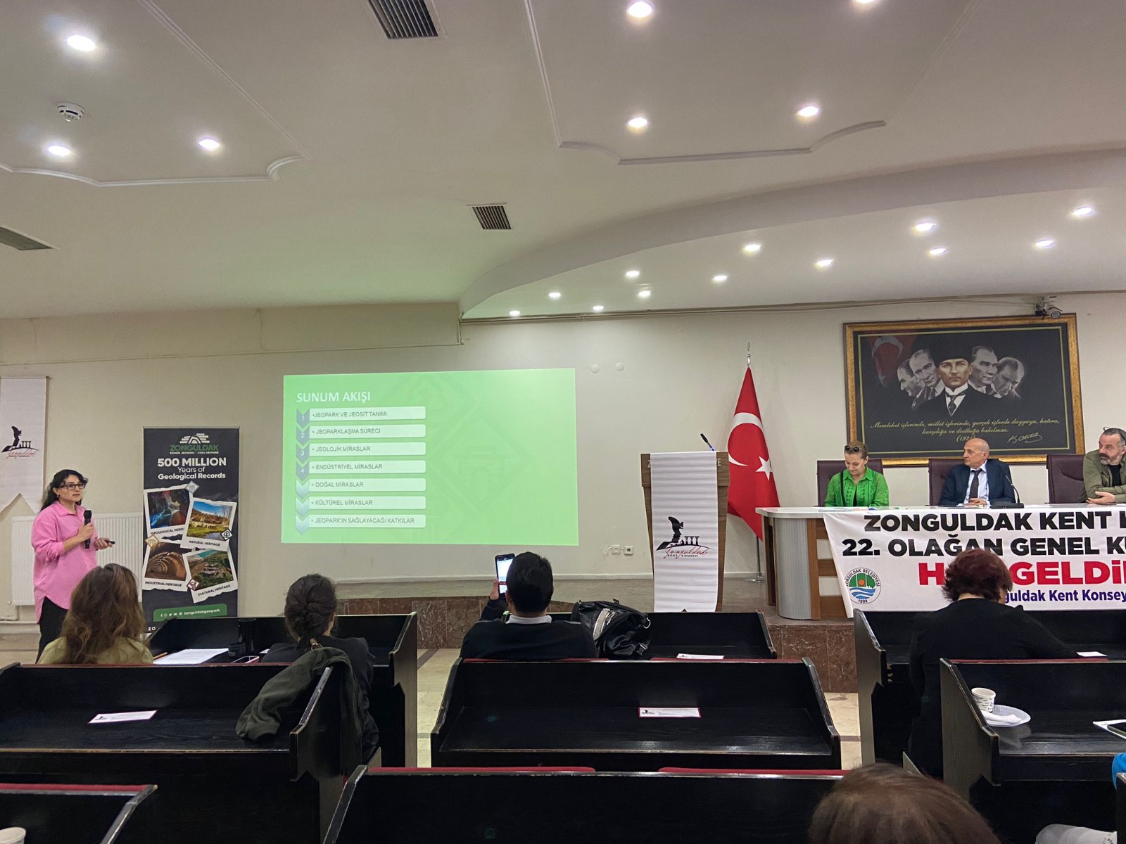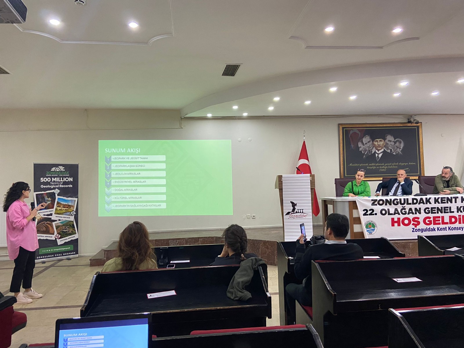 Yerel Halkın sözcüsü, sosyal yardımlaşma ve dayanışmanın daimi destekçisi olan aynı zamanda Ulusal Zonguldak Kömür Jeoparkı (UZKJ) ’nın fikirdaşı ve paydaşı, Zonguldak Kent Konseyi tarafından düzenlenen kamuoyuna açık, ‘’22. Genel Kurul’’ da ‘’ UZKJ’nin Ulusal Jeopark İlan Edilmesi ve UNESCO sürecinde STK Faaliyetlerinin Önemi ‘’ içerikli sunumu 25.10.2023 tarihinde Zonguldak Belediyesi Meclis Salonunda gerçekleştirilmiştir. Sunumun ardından Kurula davetli katılımcılar ile yapılan soru-cevap kısmında Jeopark ve kent gündemi hakkında görüş ve değerlendirmeler yapılmış olup, karşılıklı istişarelerde bulunulmuştur.