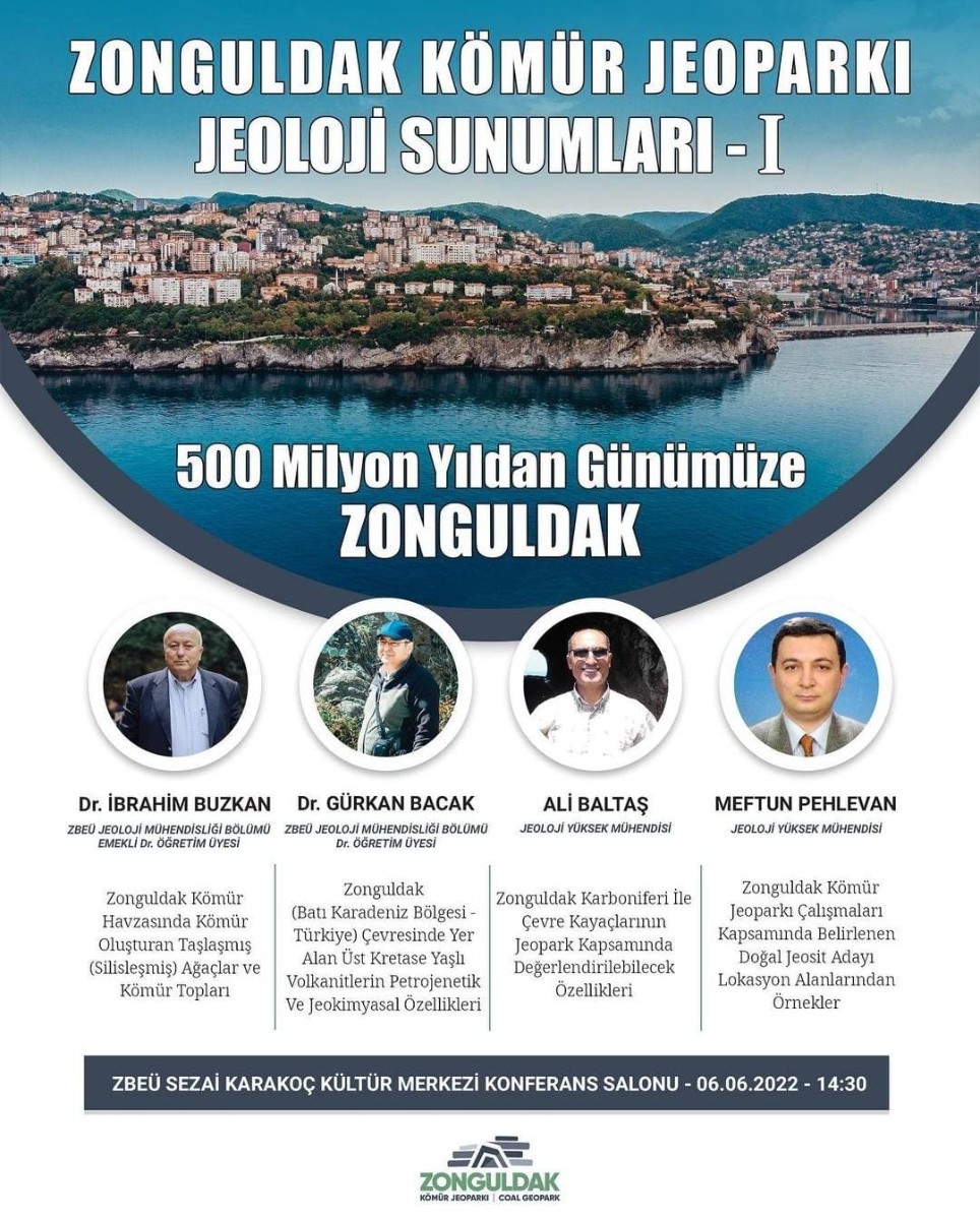 06.06.2022 tarihinde Zonguldak Bülent ECEVİT Üniversitesi'nde, Avrupa Jeoparklar Haftası kapsamında ‘Zonguldak Kömür Jeoparkı Jeoloji Sunumları -1 (500 Milyon Yıldan Günümüze Zonguldak) isimli konferans gerçekleştirilmiştir. Konferansta; Zonguldak Kömür Jeoparkı Yerbilimleri Çalışma Grubu Üyeleri olan; Sayın Doç. Dr. Gürkan BACAK ve Dr. Öğr. Üyesi Sayın İbrahim BUZKAN, Sayın Ali BALTAŞ, Sayın Meftun PEHLEVAN, sunum gerçekleştirmişlerdir. Eş zamanlı olarak Dr. Sayın Bülent GÖZCELİOĞLU’nun ‘Su altı Fotoğraf Sergisi’ açılmıştır. Konferans ve fotoğraf sergisine; Zonguldak Valisi, Jeopark Yönetim Kurulu Başkanı Sayın Vali Mustafa TUTULMAZ, çeşitli kurum ve kuruluşlar, halk, üniversite öğrencileri katılım sağlamışlardır.