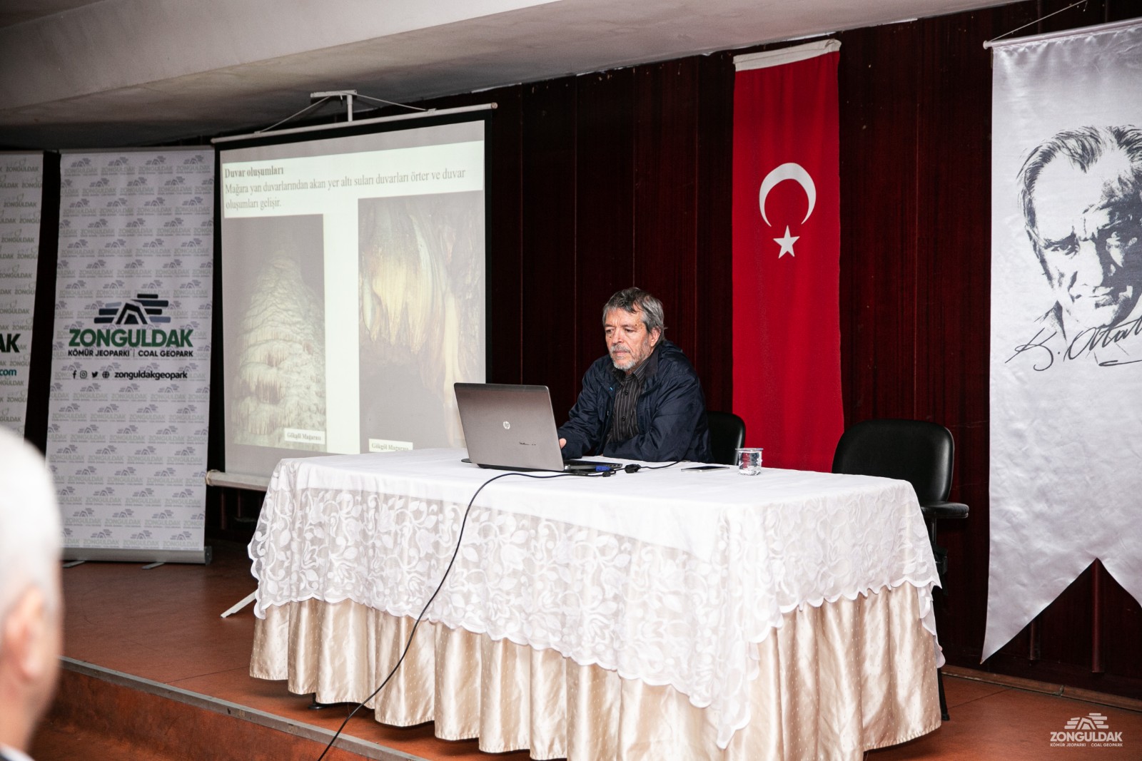 'Zonguldak Kömür Jeoparkı Kent Buluşmaları' üst başlığıyla çatısını belirlediğimiz ve ilkini 'Zonguldak Mağaraları' temasıyla gerçekleştirdiğimiz bir dizi programın ilki 15-30 Aralık tarihleri arasında gezilebilecek olan Zonguldak Devlet Güzel Sanatlar Galerisi'nde gerçekleşen; MTA'dan emekli Jeolog, Mağara Araştırmacısı ve Fotoğraf Sanatçısı Sayın Hamdi MENGİ'nin 'Zonguldak Mağaraları' isimli eşsiz fotoğraflarının yer aldığı fotoğraf sergisi ve 15 Aralık tarihinde Atatürk Kültür Merkezi'nde gerçekleşen Sayın Hamdi MENGİ'nin 'Zonguldak Mağaraları' konulu bilgilendirici konferansı olmuştur.