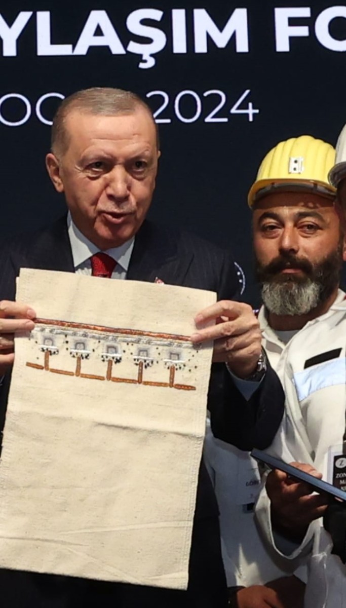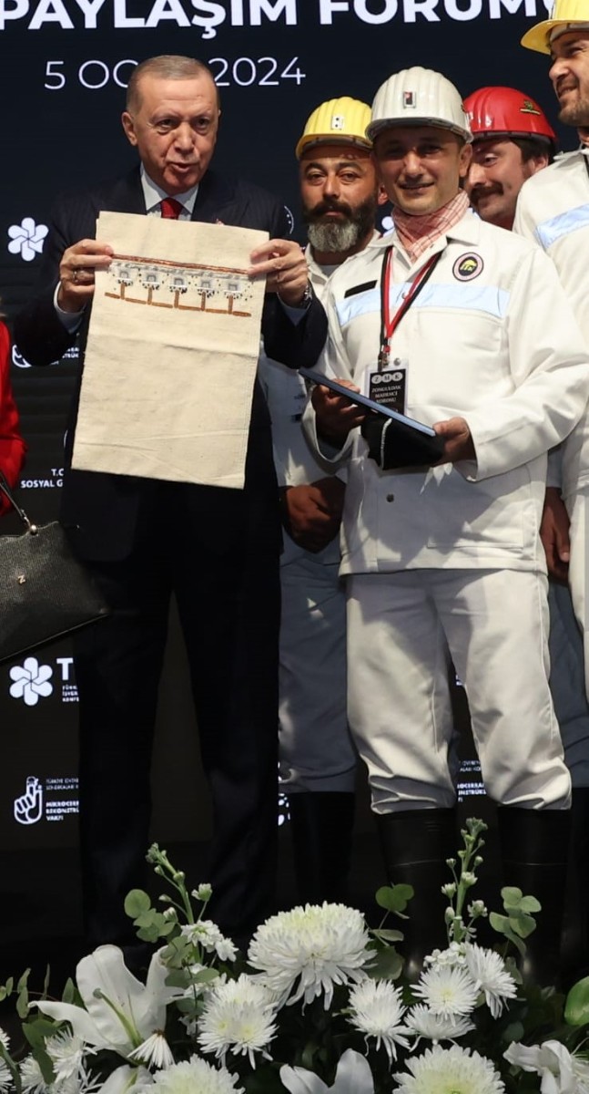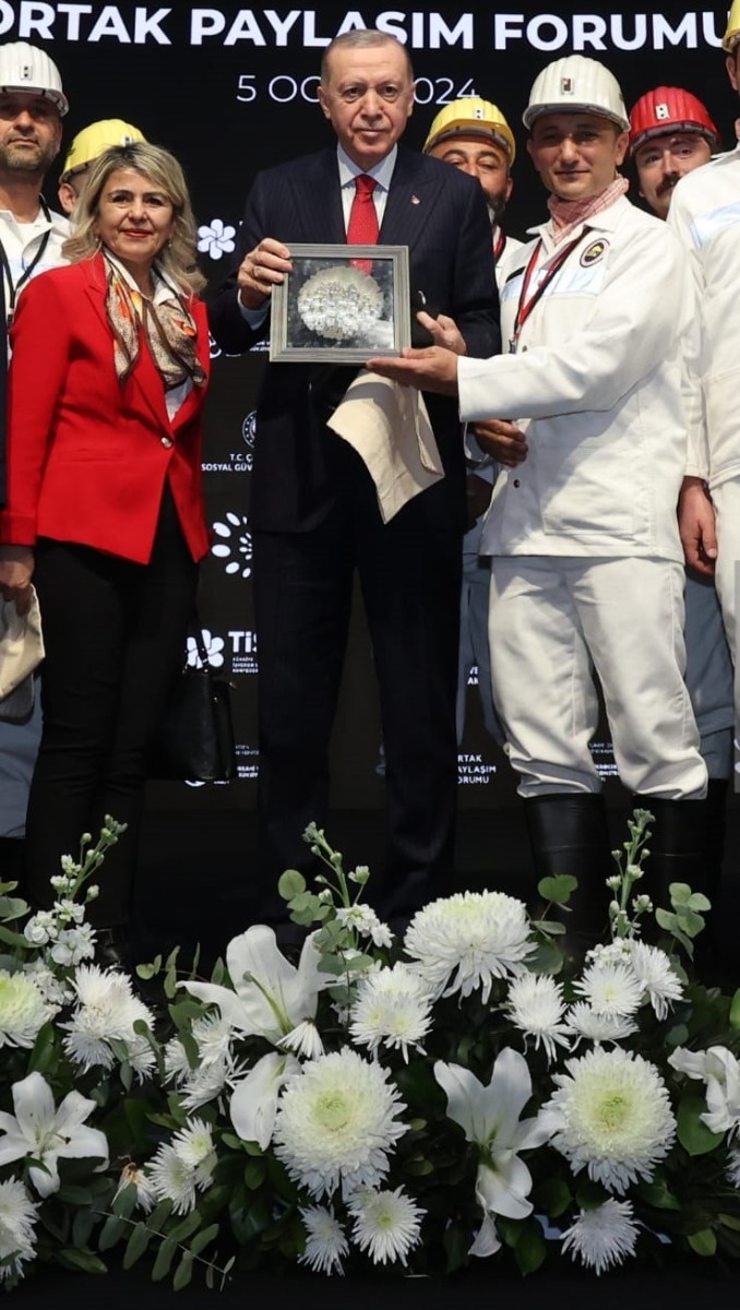 İlimizin varoluş sebebi kömürü ve madencilerimizi temsilen bu organizasyona katılım sağlayan paydaşımız Madenci Korosu aracılığıyla Sayın Cumhurbaşkanımıza; Ulusal Zonguldak Kömür Jeoparkı’nın UNESCO küresel ağa katılım sürecine ilişkin bilgilendirme metninin de yer aldığı, Zonguldak Olgunlaştırma Enstitüsü tarafından hazırlanan, vagon motiflerinin işlendiği özel tasarım örtü ile madenci figürlerinin olduğu el yapımı minyatür tablo takdim edilmiştir.